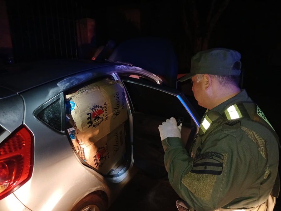 Ante la presencia de los uniformados, se observó en inmediaciones del Barrio Las Marías, a un vehículo estacionarse al costado de la cinta asfáltica de manera imprevista, visualizando al conductor abandonar el rodado y emprendiendo una deliberada huida; lográndose visualizar en el interior del rodado una gran cantidad de cajas de cigarrillos.