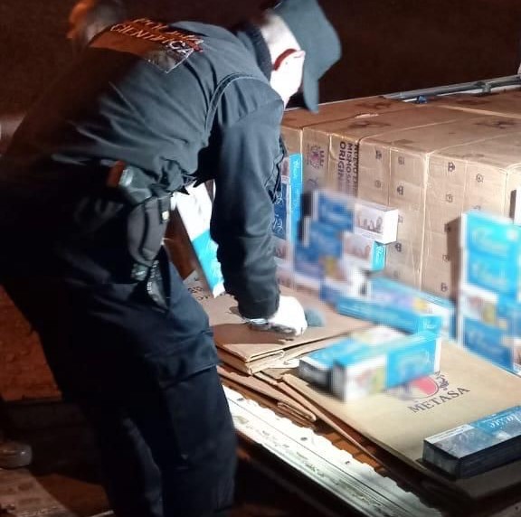 En ese mismo instante, y bajo las directivas del Magistrado interviniente, los agentes procedieron a la apertura del vehículo, donde decomisaron 44 cajas, que contenían un total de 2.200 cartones, equivalentes a 22.000 cajetillas de cigarrillos de una marca extranjera, sin contar con el aval aduanero correspondiente, valuado en 33.030.000 pesos.