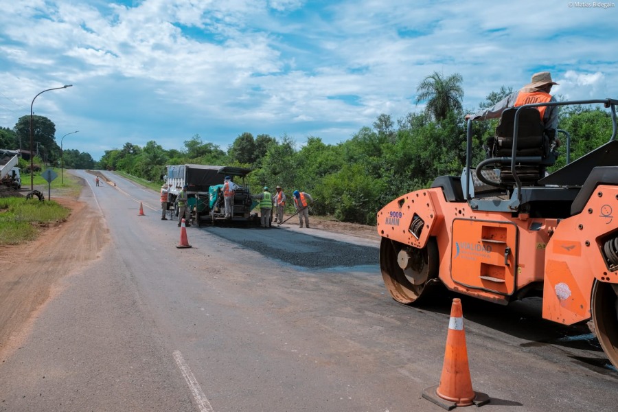 La Dirección Provincial de Vialidad (DPV) avanza con tareas sobre la capa de rodamiento asfáltica en la Ruta Provincial N° 103 a la altura del Municipio misionero de Mártires.