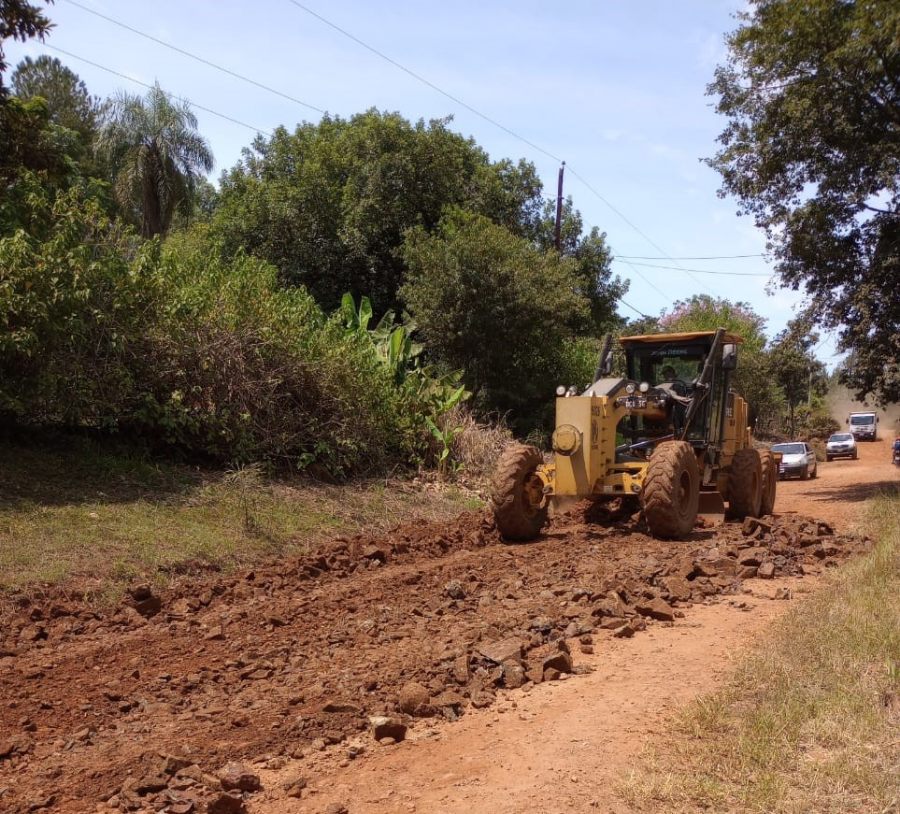 También se avanza con las mismas tareas en tramos del camino vecinal entre el paraje Cuña Pirú y Escuela Ñamandú, en el Municipio de Ruiz de Montoya.