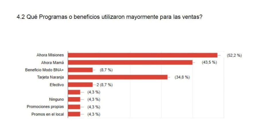 En esta encuesta realizada entre los comerciantes de la ciudad de Posadas el Programa Ahora Misiones fue señalado como el más utilizado con un 52%, seguido por Ahora Mamá, con un 43,5%.