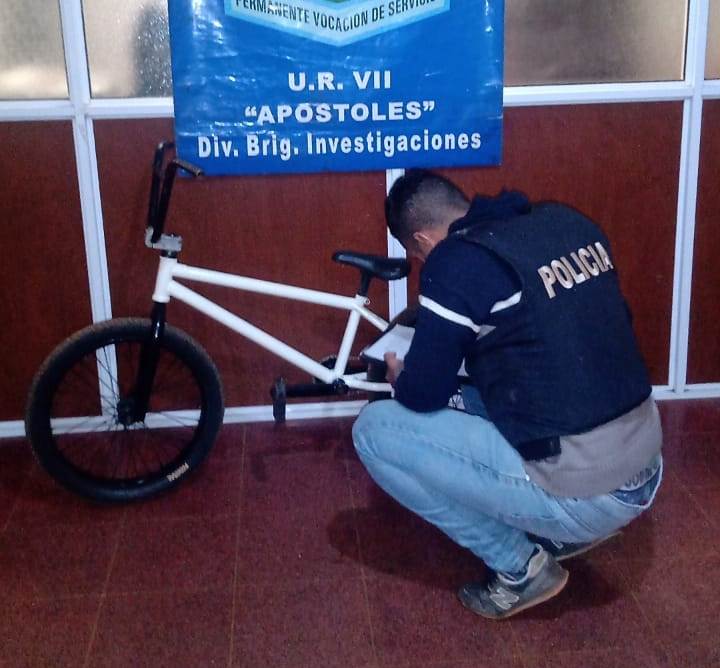 Así mismo los investigadores recuperaron una bicicleta rodado 20 tipo BMX, que había sido hurtada en el Barrio Cantera de la ciudad de Apóstoles, la cual estaba siendo ofrecida a la venta en la red social Facebook.