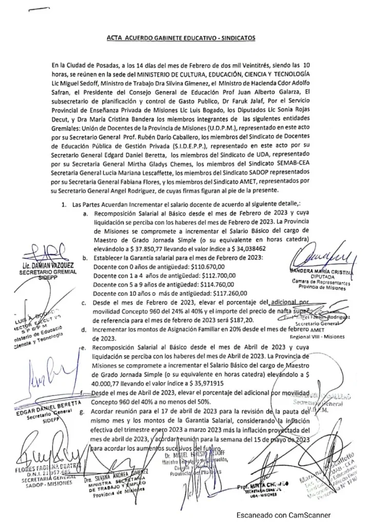 El Ministro de Educación, Ciencias y Tecnologías de la provincia de Misiones, Miguel Sedoff dio cuenta de la recomposición salarial docente convenida para el mes de Febrero, tras la reunión con los gremios realizada esta mañana.