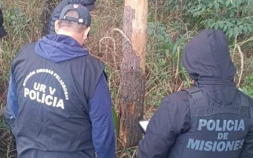 Consecuentemente, se solicitó la presencia de efectivos de la División Drogas Peligrosas de la Unidad Regional V perteneciente a la Policía de la provincia de Misiones, quienes realizaron los test orientativos en el lugar. Las pruebas dieron resultado positivo para cannabis sativa, con un peso total de 7,724 kilogramos.