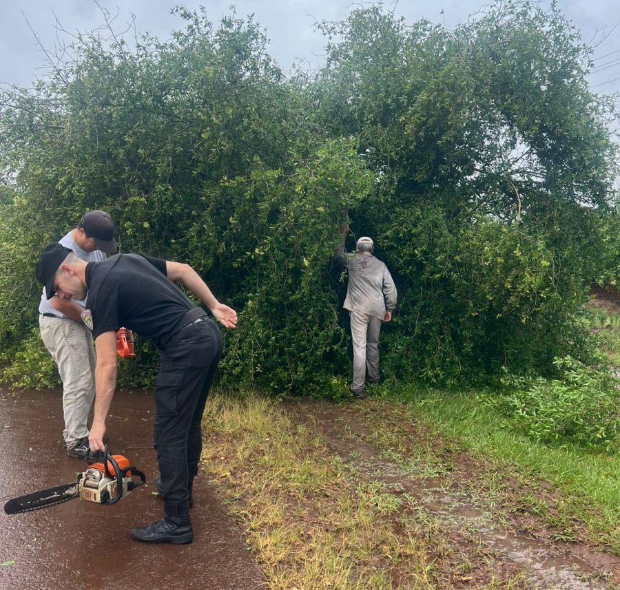 Por su parte, en el ámbito de la Unidad Regional IV de Puerto Rico, se reportaron daños en el salón de usos múltiples de la sede policial, donde se desprendió parte del techo posterior. Asimismo, en la localidad de Garuhapé, la caída de un árbol cubrió parcialmente la calzada en el kilómetro 1481 de la Ruta Nacional 12, situación que fue rápidamente normalizada por el personal policial y municipal.