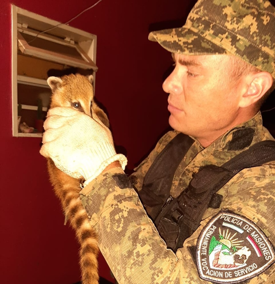 Es por ello, que una vez en el sitio, informaron sobre el procedimiento a la dueña del lugar y esta hizo entrega del animal. Así también, en la localidad de Candelaria, los uniformados resguardaron a otro coatí, que había llegado desorientado hasta un domicilio.
