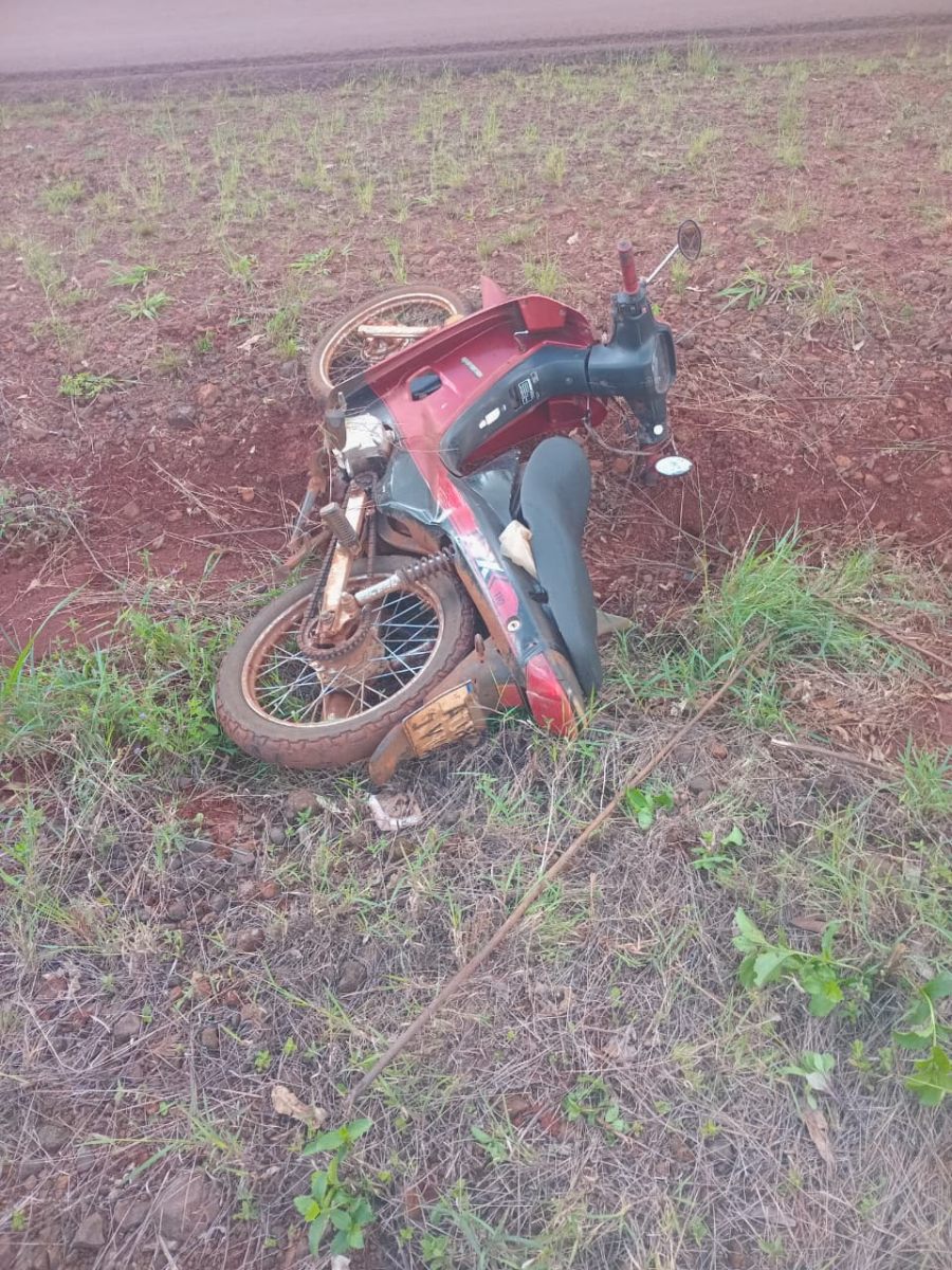 El siniestro ocurrió cerca de las 14,50 horas de ayer, cuando una motocicleta Motomel 110cc circulaba en sentido de las localidades de, Campo Grande y 25 de Mayo y, por causas que se investigan, su conductor perdió el control del rodado, despistando hacia la banquina derecha.