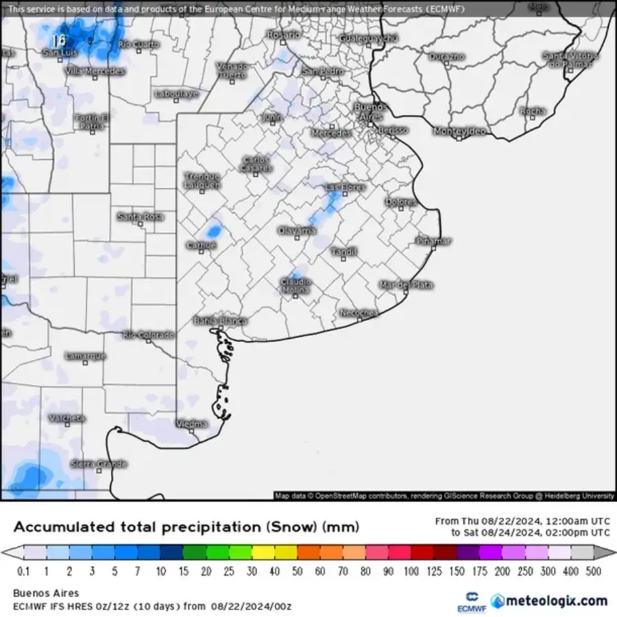Pronósticos de nieve en Buenos Aires para este sábado. Fuente: Eduardo Rollero.