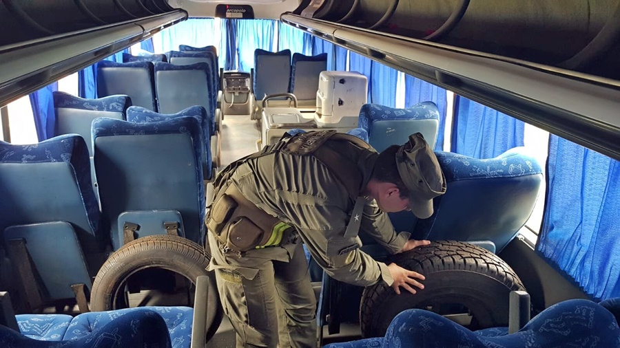 Al momento de prestar asistencia y verificar la integridad de los pasajeros, los uniformados constataron que varios neumáticos de origen extranjero se hallaban acondicionados entre los asientos destinados al pasaje. Tal situación motivó a requisar el resto del vehículo, en cuya bodega de carga fue hallada mercadería de las mismas características, totalizando 42 cauchos de distintos rodados y medidas.