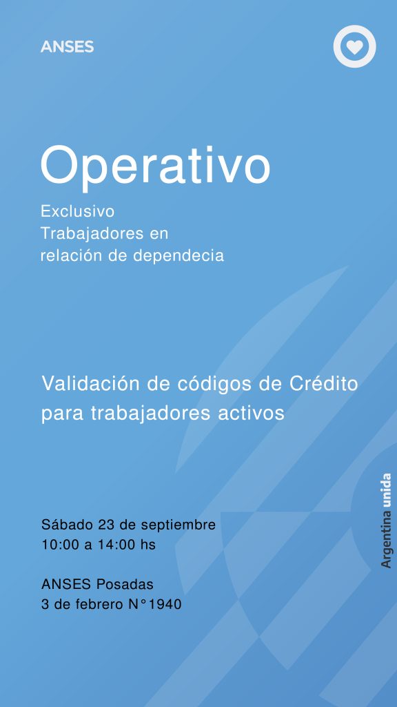 ANSES Posadas realizará de forma voluntaria, este sábado 23 de Septiembre un operativo para validar los códigos de los nuevos créditos para trabajadores en relación de dependencia.