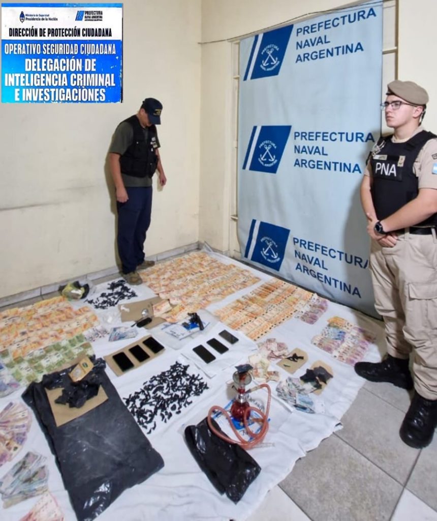Durante el operativo, además, se incautó cocaína, de la cual una parte ya estaba preparada en dosis listas para su venta, un arma de fuego y casi 500 mil pesos en efectivo.
