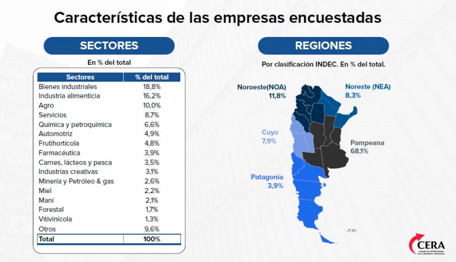 Una encuesta realizada por la Cámara de Exportadores de la República Argentina -CERA- indica que casi un 50% de las empresas prevé incrementar sus exportaciones durante el 2024. Sectores agroindustriales prevén una recuperación luego de la sequía de 2023.