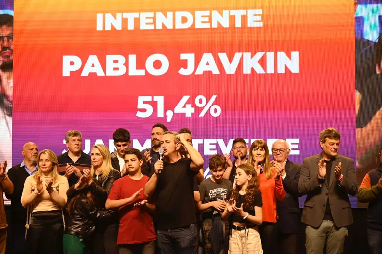 A las 21.20, Javkin subió al escenario y uno de los dirigentes de su espacio anunció, en base a datos de sus mesas testigos, un triunfo del actual intendente por tres puntos de diferencia. El escrutinio oficial daba a esa hora, con el 82 por ciento de los votos escrutados, una diferencia similar. Javkin sumaba el 51,3 por ciento, frente al 48,6 de su rival.