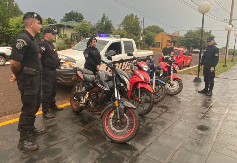Se trasladan al lugar patrullas de la División Comando Radioeléctrico junto a la Comisaría Seccional Tercera, perteneciente a la Unidad Regional VII Apóstoles de la Policía de la provincia de Misiones, donde observan la presencia de un importante número motociclistas, quienes al notar la presencia policial intentan darse a la fuga en todas direcciones, luego de un seguimiento, se logró detener la marcha de cuatro de los biciclos, tratándose siendo incautados, en tanto se identificó a los ocupantes, siendo los mayores aprehendidos y la menor demorada.