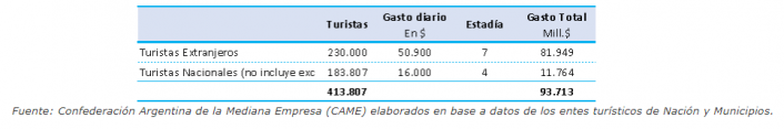 Los números del sector se desglosan en: 230 mil turistas extranjeros con una estadía media de 7 días y un gasto diario de 200 dólares cada uno, según las cifras estimadas por el Gobierno Nacional. Los visitantes foráneos inyectaron 322 millones de dólares, que equivalen a 81.949 millones de pesos. A esto, se agrega los aportes que realizó la FIFA en gastos de organización, que fueron otros 40 millones de dólares. Los extranjeros hicieron fuertes desembolsos en indumentaria, calzado, marroquinería, joyerías, aprovechando la diferencia cambiaria.