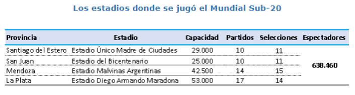 El Mundial Sub-20 de Fútbol dejó números positivos para el turismo. Durante los 23 días que duró el certamen viajaron, sólo por el torneo, 414 mil visitantes entre nacionales y extranjeros, y gastaron 93.713 millones de pesos en alojamiento, comida, transportes internos, compras y recreación.
