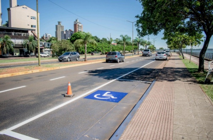 En el marco de las acciones diarias para garantizar la seguridad vial, se realizó la demarcación horizontal de espacios exclusivos de estacionamiento para motos y personas con discapacidad en la intersección de la Costanera y calle Benavidez.