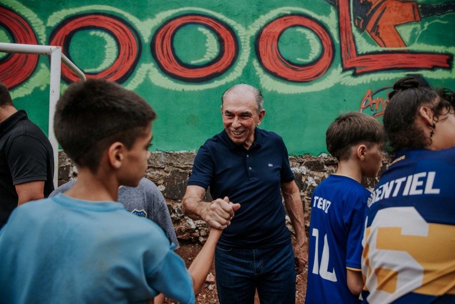 También acompañaron la entrega los titulares del Proyecto Renzo Pedroski, Martín Wimmer y Arturo Barrios, junto a vecinos del lugar y decenas de niños y niñas que disfrutaban de la cancha y de los juegos del flamante espacio comunitario.