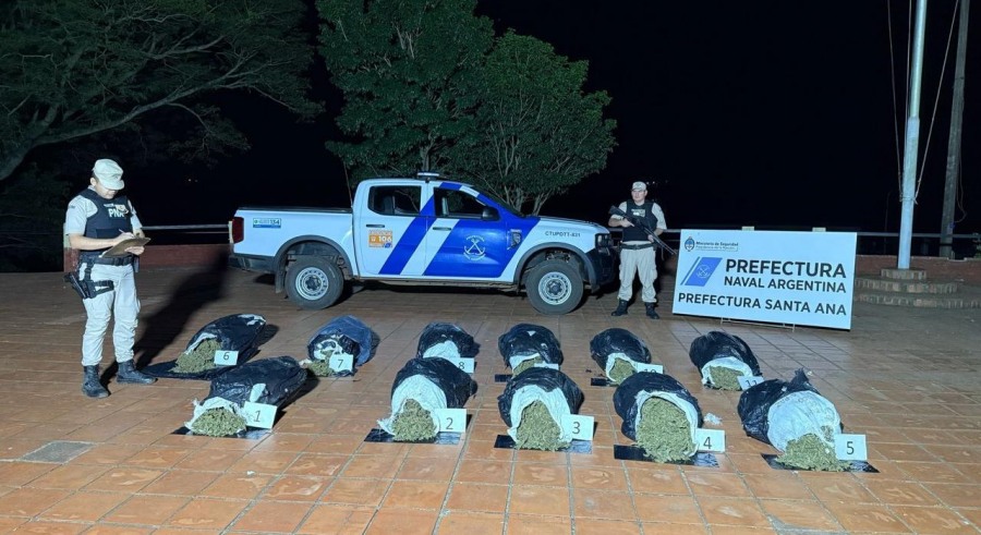 Tras un intenso rastrillaje por tierra y agua, en el kilómetro 1.604 del Río Paraná, se hallaron once bultos abandonados envueltos en bolsas de nylón.