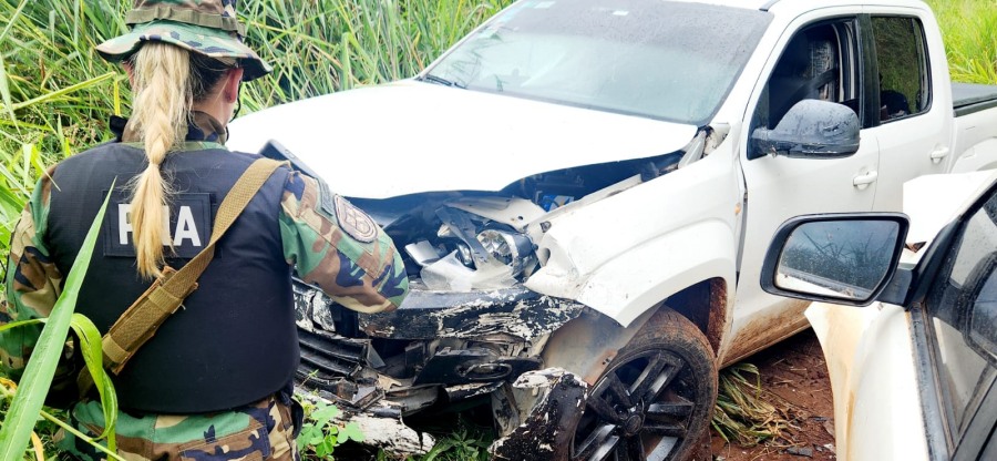 Inmediatamente, se emitió una alerta a los móviles desplegados en la zona y comenzó el operativo de persecución. En ese momento, al intentar interceptar el vehículo sospechoso con una camioneta oficial, esta fue colisionada frontalmente, resultando heridos tres efectivos de Prefectura con distintos traumatismos.