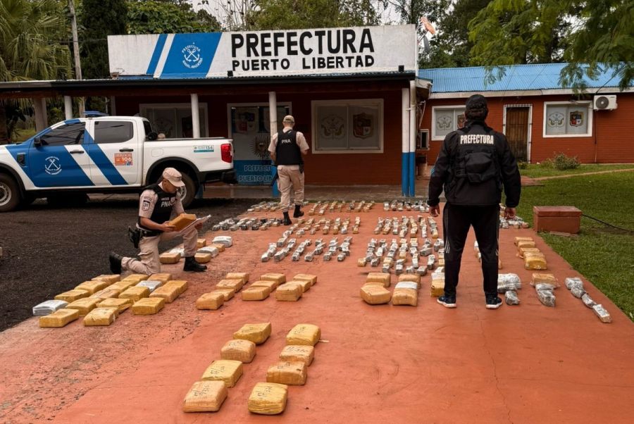 Efectivos de la Prefectura Naval Argentina secuestraron más de 319 kilos de droga en un operativo realizado en la zona del Municipio misionero de Puerto Libertad, en el marco de las tareas de control y vigilancia que la Fuerza desarrolla para prevenir el tráfico de estupefacientes en la frontera norte del país.