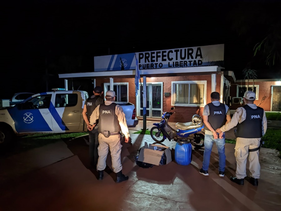 El operativo comenzó cuando el personal de la Prefectura observó el cruce transversal de un bote desde la costa paraguaya, con dos personas a bordo, uno de los cuales descendió de la embarcación y emprendió la huida a bordo de una moto, que lo aguardaba en la costa.