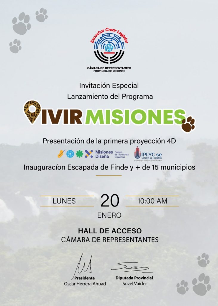 El lunes 20 de Enero, a las 10,00 horas, se lanzará en el Salón de las Dos Constituciones de la Legislatura el Programa Escapadas de Finde, “Vivir Misiones”.