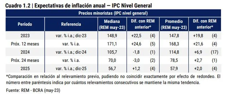 Los analistas del REM estimaron una inflación para todo el año de 148,9% interanual, 22,5 puntos porcentuales (p.p.) por encima del pronóstico previo. Aunque quienes mejor pronosticaron esa variable en el corto plazo (TOP-10) esperan una inflación de 147,4% i.a. para 2023.