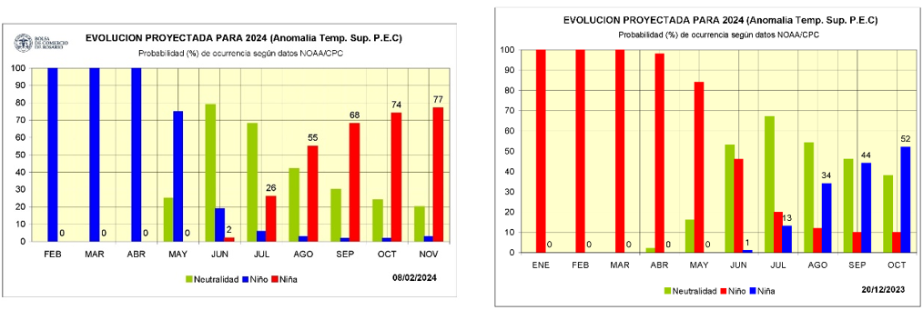 Los modelos dinámicos y estáticos más reconocidos (26 en total) coinciden en un importante enfriamiento en octubre. La publicación de datos más reciente de la NOAA y el CPC de finales de febrero 2024 consolida aún más la tendencia mostrada por el seguimiento de los indicadores de escala global desde finales del 2023.