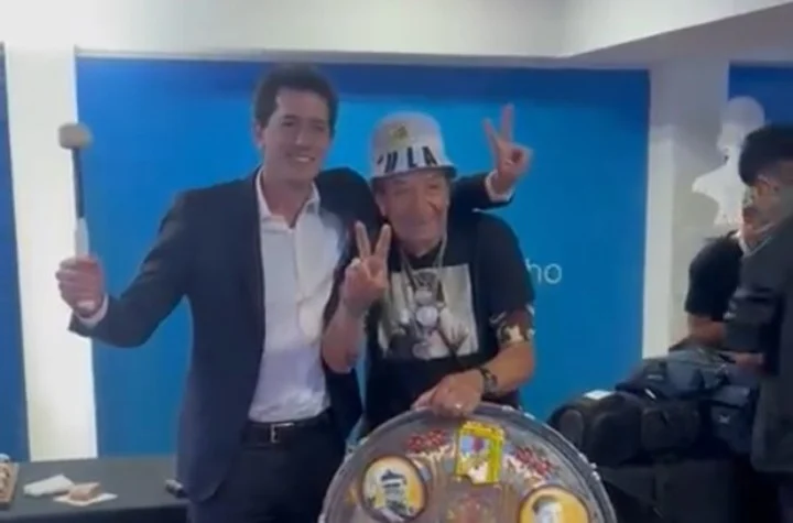En la publicación se puede ver un video del ministro con el famoso hincha, en el que ambos hacen el gesto peronista de la V de la victoria con los bombos alrededor. Es un video de antes de viajar a la entrega de premios. de cuando el Tula - militante peronista - le llevó el bombo al ministro y alfil de La Cámpora.
