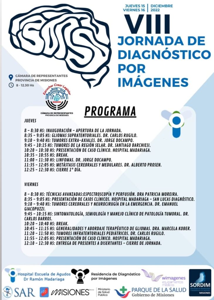 Realizarán la VIII Jornada de Diagnóstico por Imágenes, el 15 y 16 de Diciembre de 2022, en el Salón de las Dos Constituciones de la Cámara de Representantes de la Provincia de Misiones, de 8,00 a 12,30 horas, en la ciudad de Posadas.