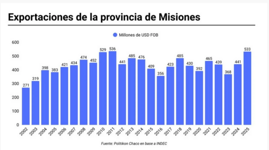 El desempeño exportador de la provincia de Misiones durante 2025 marcó un récord histórico para la provincia y consolidó su amplia supremacía dentro del Nordeste argentino (NEA).