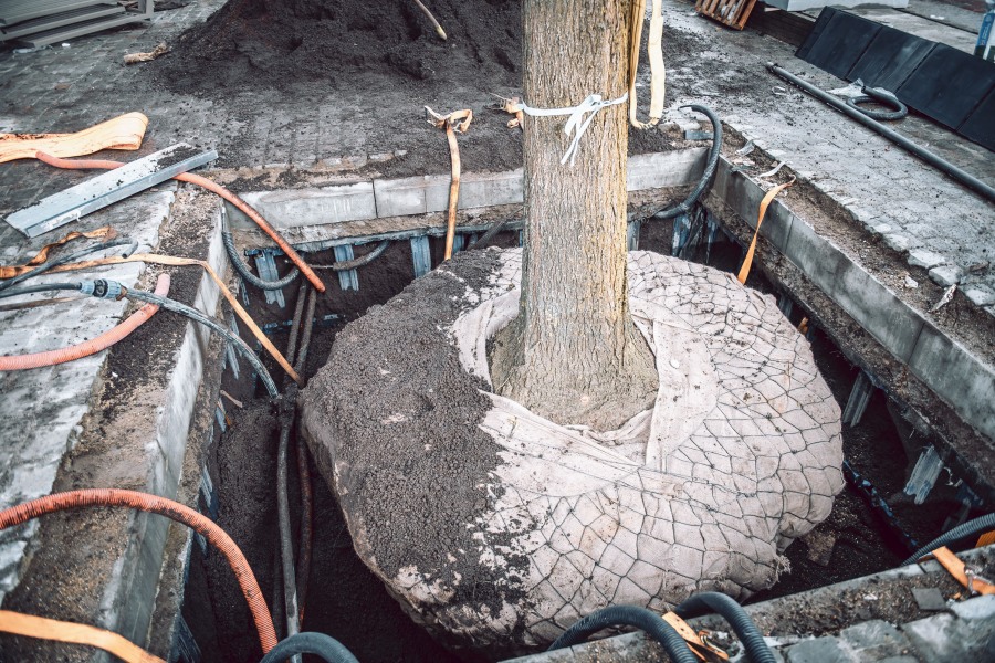 Wavin - Planten van bomen in de groenbunker te Cartier Blue in Hasselt Wavin; bomen; bunker; groenbunker; planten; cartier blue 20200306142500+0100 ID/ Boumediene Belbachir