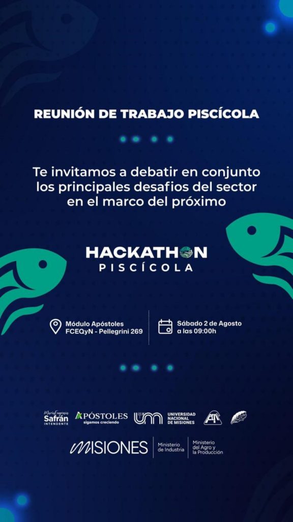 Desde el Municipio de la ciudad misionera de Apóstoles se informa que se llevará a cabo una Reunión de Trabajo Piscícola, en el marco de la antesala del Hackathon Piscícola que se realizará en el mes de Septiembre.