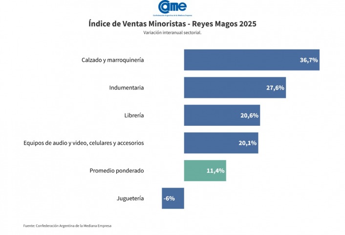 Las ventas de los comercios minoristas PyMEs por la llegada de los Reyes Magos 2025 subieron 11,4% frente a la misma fecha del año pasado, medidas a precios constantes.