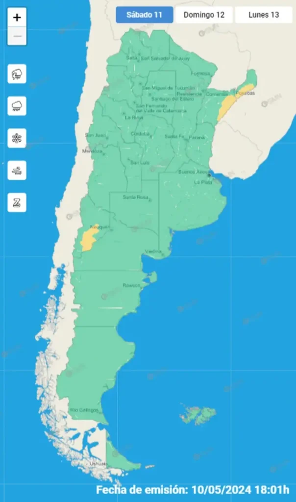 Las provincias complicadas para este sábado de Mayo con Corrientes, Misiones y Neuquén.