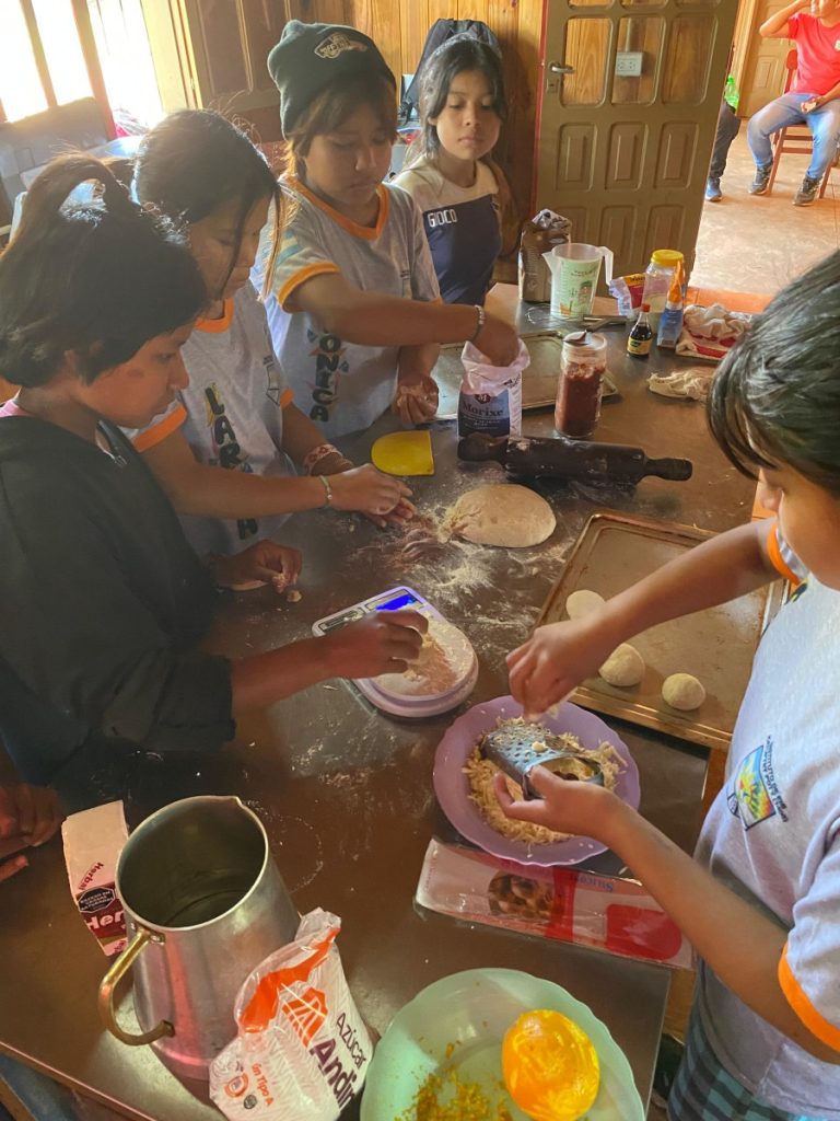 El segundo bloque estuvo orientado a la cocina propiamente dicha. Gabriela Da Silva, especialista en gastronomía, junto con Matías Galarza y la nutricionista Constanza Fornerón, prepararon recetas como bizcochuelos, pastas caseras y pre-pizzas, todas ellas pensadas para ser económicas, fáciles de realizar y con ingredientes disponibles localmente. Estas recetas no solo destacaron por su valor nutricional, sino también por su versatilidad y durabilidad, aspectos esenciales para las familias de la región.