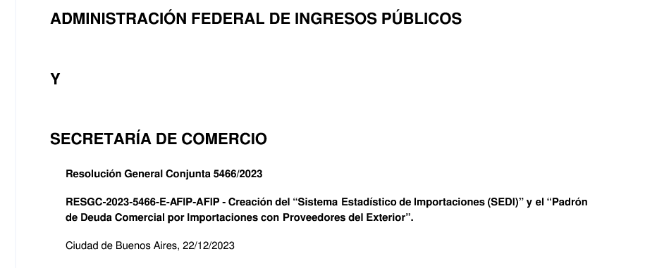 De este modo, la Administración Federal de Ingresos Públicos (AFIP) y la Secretaría de Comercio formalizaron la medida, con la publicación en el Boletín Oficial de la Resolución General Conjunta 5466/2023.