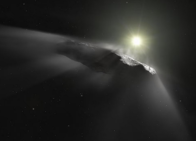 Reproducción artística del asteroide interestelar Oumuamua (ESA/HUBBLE; NASA; ESO; M. KORNMESSER)