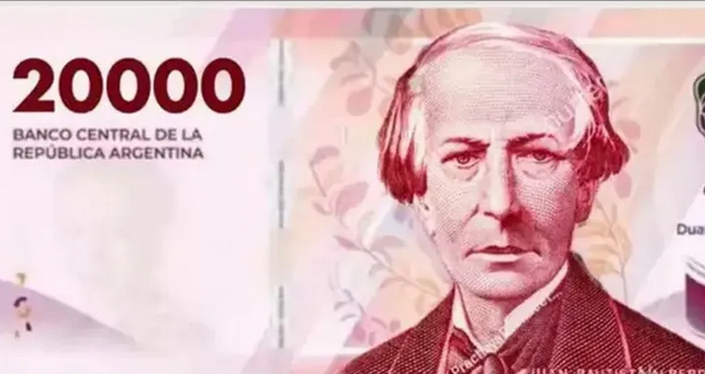 Por su parte, el billete de 20.000 pesos será el de mayor denominación de la moneda nacional y estará protagonizado por Juan Bautista Alberdi, inspirador de la Constitución Nacional de 1853, cuyo retrato estará en el anverso. En el reverso, estará la ilustración de la casa natal del abogado, diplomático, economista, escritor, político y prócer argentino.