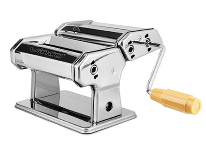 La W150 - Fábrica de pastas Winco 150 mm es una fabricadora manual de pasta con rodillos ajustables de 150 mm en acero inoxidable. Su diseño incluye un mango removible para facilitar el almacenamiento y la manipulación. Ideal para quienes desean preparar pasta casera de forma sencilla y personalizada.