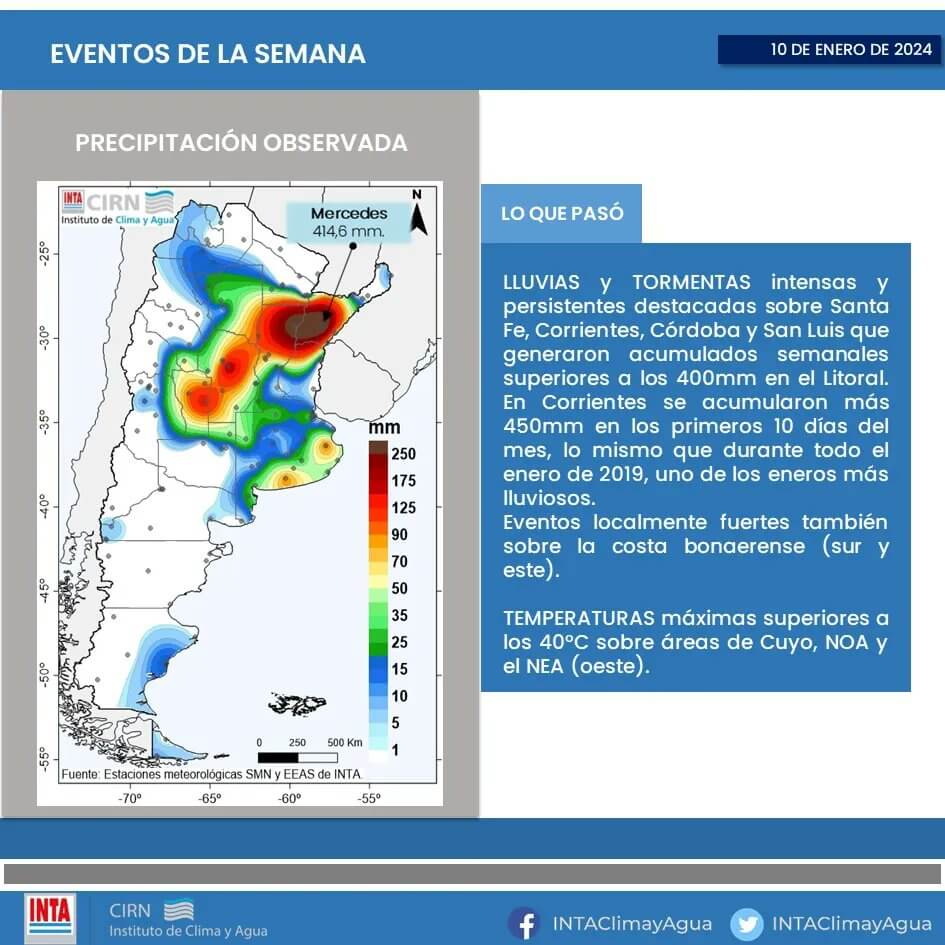 Según el Instituto de Clima y Agua del INTA, en el caso de Corrientes ya cayeron 450 milímetros en lo que va de enero, lo mismo que en todo enero de 2019, uno de los meses de los que se cuenta con mayor registro histórico.