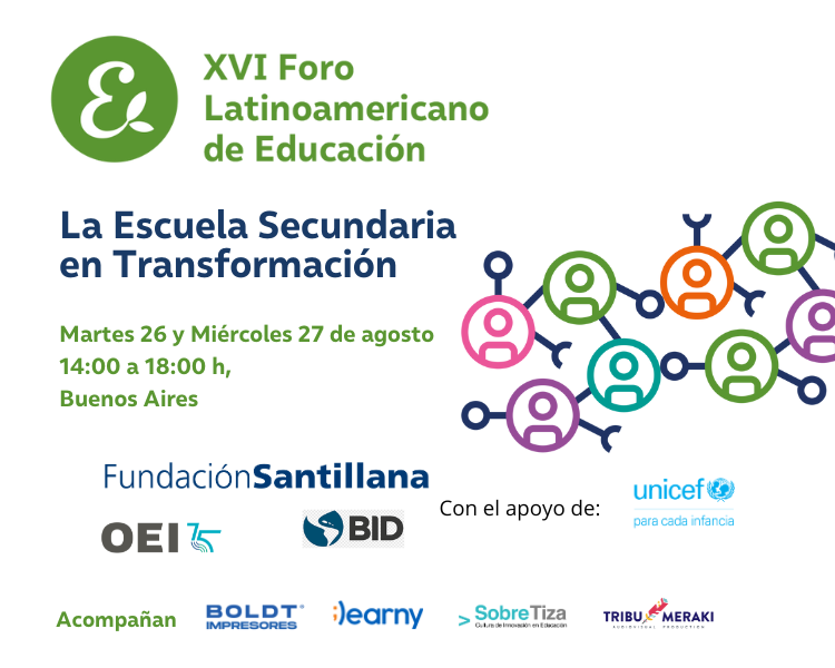 El Foro Latinoamericano de Educación es un espacio creado por Fundación Santillana, con el patrocinio de la Organización de Estados Iberoamericanos para la Educación, la Ciencia y la Cultura (OEI). Este año cuenta con el apoyo del Banco Interamericano de Desarrollo (BID) y de Unicef Argentina. También colaboran en su organización Boldt Impresores, Sobre Tiza, Learny y TribuMeraki.
