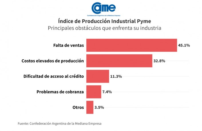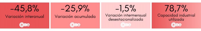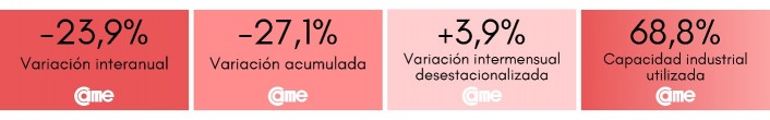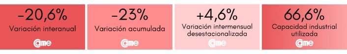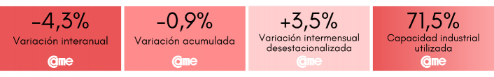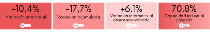 Todos estos resultados surgen del Índice de Producción Industrial PyME (IPIP) que elabora CAME, con una muestra que alcanzó a 414 industrias PyME a nivel federal.