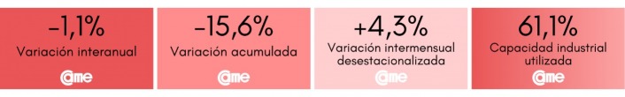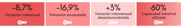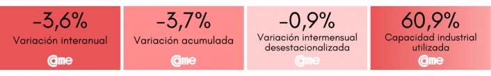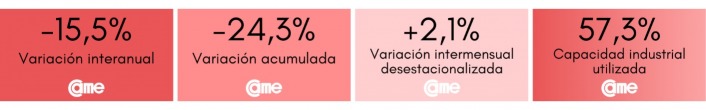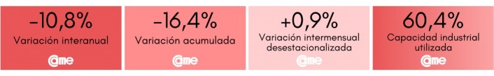 Todos estos resultados surgen del Índice de Producción Industrial PyME (IPIP) que elabora CAME, con una muestra que alcanzó a 414 industrias PyME a nivel federal.
