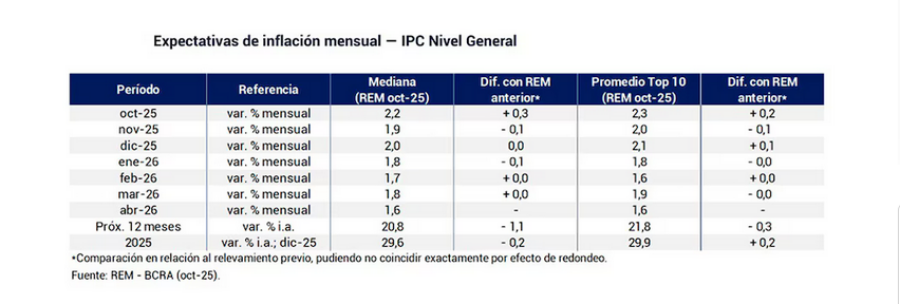 En relación a las proyecciones de los próximos meses, los principales analistas del mercado estiman que el IPC será de 1,9% en Noviembre, de 2% en Diciembre y de 1,8% en Enero de 2026.