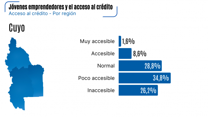 Una encuesta realizada por el sector Joven de la Confederación Argentina de la Mediana Empresa (CAME) determinó que seis de que cada diez empresarios argentinos de entre 18 y 40 años tiene dificultades o le resulta imposible acceder al financiamiento productivo. Se trata de un segmento etario con falta de capital de respaldo y de flujo de fondos para invertir.
