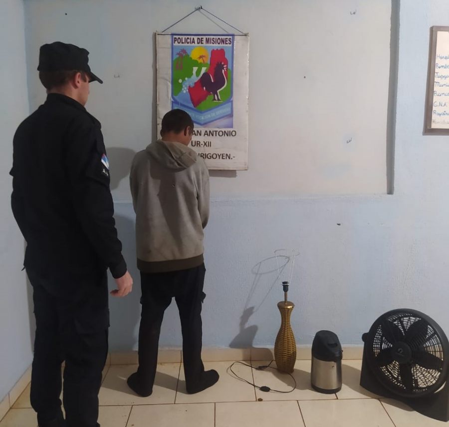 En la localidad de San Antonio, durante un patrullaje por el Barrio Cerámica, agentes observaron a tres hombres que intentaron escapar al notar la presencia policial. Al ser interceptados, se constató que transportaban una bomba de agua y un transformador, qie habían sustraido momentos antes a un vecino de la zona. Los sospechosos, de 21 y 33 años, fueron demorados preventivamente.