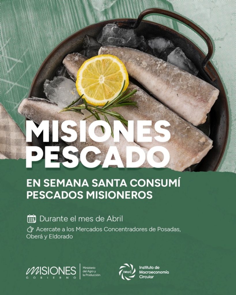A través del Programa “Misiones Pescado”, el Gobierno Provincial consolida una política estratégica para el desarrollo de la piscicultura, el fortalecimiento del entramado productivo local y el acceso a alimentos saludables de origen 100% misionero. En el marco de este programa y durante todo el mes de abril, los misioneros y misioneras pueden acceder a carne de pescado a buen precio y fresco en los tres Mercados Concentradores de la provincia de Misiones y en las Ferias Francas.