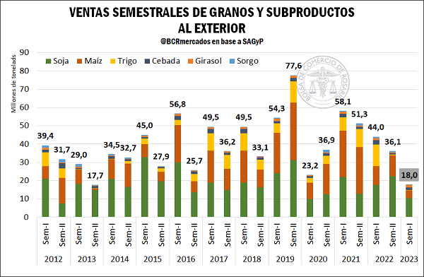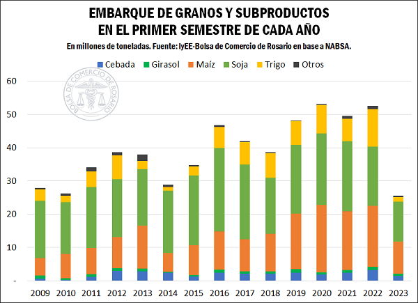Fueron apenas 12,9 millones de toneladas, que con respecto a la primera mitad de 2022, cuando fueron 29,9 millones de toneladas, significan una caída acumulada cercana al 60%.